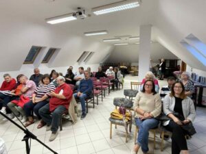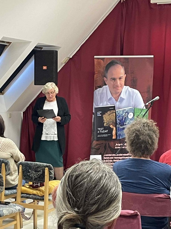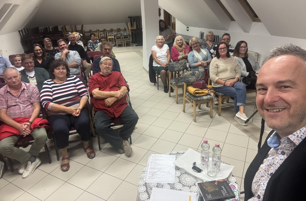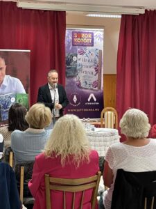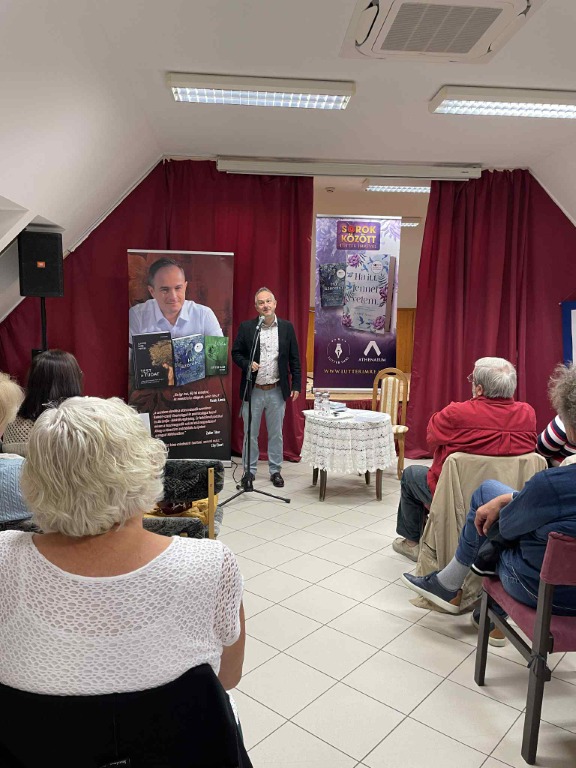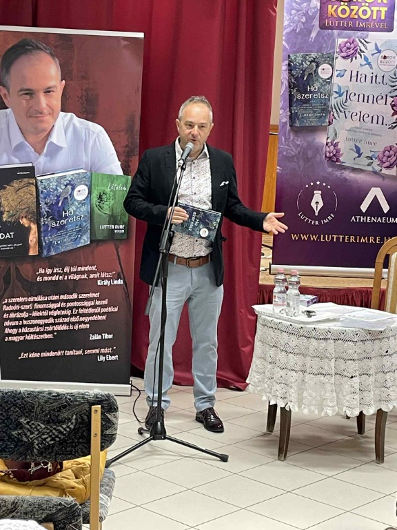 Lutter Imre többek között magyar versmondó előadóművész, műsorvezető, költő. Elsősorban ember, amellett művész és a versek szerelmese. Hogy miért? Mert a sorok között ott van az élet.” 2019-ben 24 órán át mondott verset, s ezzel felállította az egyéni versmondás világrekordját. Gyönyörű orgánumával kivételes élmény, ahogy verset mond. Előadásában Petőfi Sándor, József Attila, Szabó Lőrinc költeményeit és természetesen saját verseit hallhattuk tőle. Néhány szóban bemutatta Lételem, Test és tudat című verses köteteit, illetve a „Ha szeretsz” és a „Ha itt lennél velem” című könyveit, amiben ismert emberek ismeretlen történeteit mutatja be – versekkel. Kiderül ezekből a történetekből pl. hogy József Attila Mama című verse kihez, hogyan kapcsolódik. A résztvevők nagy élvezettel hallgatták a verseket, illetve a történeteket. Az előadás végén dedikálta köteteit. ( „A dolgok változnak, a vers örök” Lutter Imre)